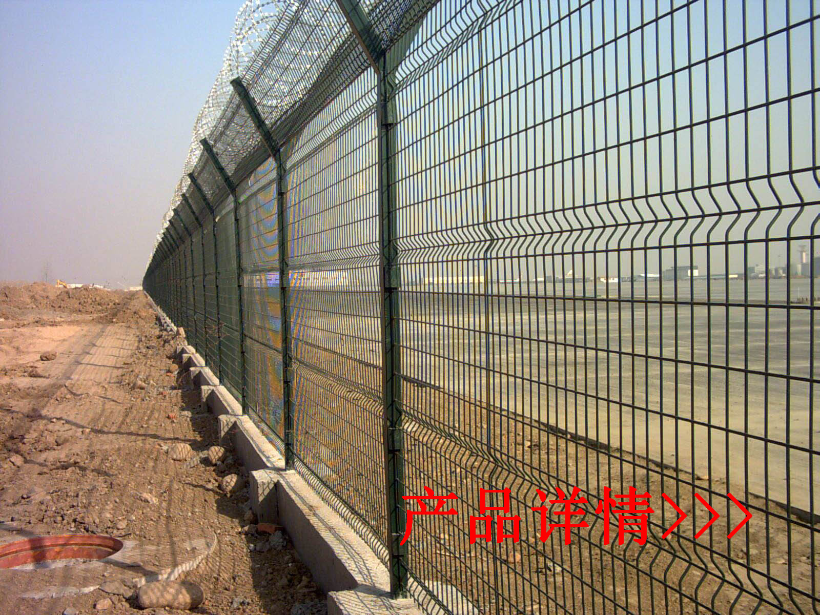 機(jī)場(chǎng)護(hù)欄網(wǎng)又稱作“Y型安全防御護(hù)網(wǎng)”,是由V型支架立柱加強(qiáng)型焊接片網(wǎng),安全防盜連接件和熱鍍鋅刀片刺網(wǎng)組成強(qiáng)度和安全防御性級(jí)別很高。被廣泛應(yīng)用在機(jī)場(chǎng),軍事基地等高安全場(chǎng)所。